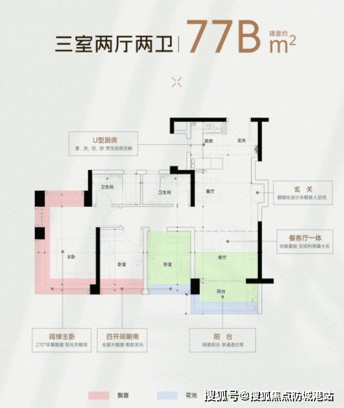 项目提供从77平方米到135平方米不等的三至四房户型,使用率最高可达138%,并采用了创新的设计理念,如LDKB一体化设计、270°全景主卧以及南北对流大方厅等,旨在最大化利用空间并提升居住舒适度。