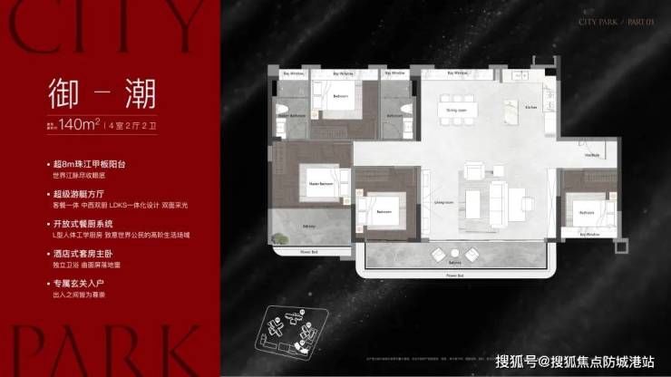 西派粤府的设计遵循“低密围合,栋栋面江”的理念,采用围合式布局,每栋楼均有错位式设计,以最大化每个住户的江景视野。户型以120㎡-140㎡四房为主,南北通透的设计为业主带来了极致的使用空间与光照效果。每一处细节都精心雕琢,从低楼层的现代岭南风园林到高楼层的豪华江景,都在不断为业主打造舒适且富有品质感的居住环境。