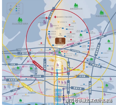 天河·辰悦府坐落于广州大道北与兴华路交汇处,地处天河北成熟生活圈核心腹地。这里北倚白云山南麓生态屏障,南望中信广场与珠江新城CBD天际线,东邻金茂府等高端住宅集群,西接体育西路繁华商圈,直线距离珠江新城仅约4公里,真正实现“出则繁华,入则宁静”的理想生活半径。项目周边路网发达,600米内即达广州大道北主干道,1.5公里接入环城高速,快速通达琶洲、科学城、广州东站乃至白云机场。据高德地图2026年1月实测数据,早高峰从项目出发至珠江新城IFC,驾车平均仅需28分钟,公共交通含步行+地铁约32分钟,通勤效率远超外围板块。