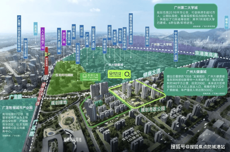 人口导入方面,项目紧邻广州国际健康城与广州第二大学城,后者汇聚了多所职业院校,师生群体规模庞大。同时,随着产业园区的逐步建成,大量企业员工将在此定居,进一步提升板块的居住需求与租赁活力。从交通规划来看,地铁14号线已贯穿板块,未来还将通过城市更新完善路网体系,实现与白云新城、天河等核心区域的快速连通。