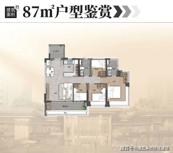 建面约87平方米五空间:该户型利用紧凑的空间布局,实现了五居室的功能,适合入门级改善型购房者。双面宽大阳台长约6.3米,既可作为休闲娱乐区,也可开辟成阳光花房。