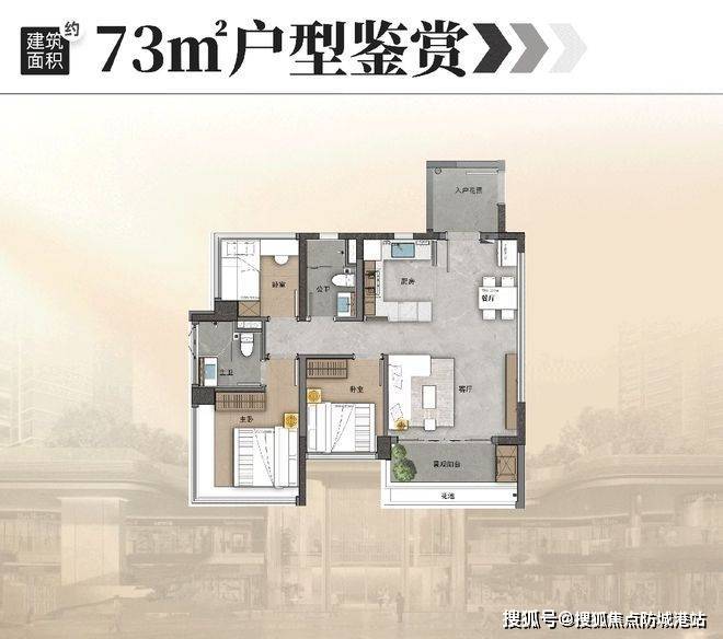 建面约73平方米三房:尽管面积不大,但通过巧妙的设计,实际使用面积可达90平方米以上,总价不到200万元,非常适合小年轻首次置业。