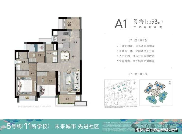 一期阅海组团,作为项目首发的品质组团,在户型设计上充分考量刚需家庭的居住需求,以高使用率的空间设计,打造兼具实用性与舒适度的居住产品,户型格局方正,采光通风俱佳,功能分区清晰,可全面满足年轻家庭的首置需求。