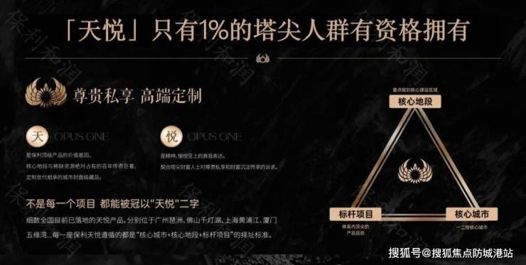 “天悦”属于“TOP”系,是保利超越以往全系列产品线的收藏级作品,保利在全国布局了超900个项目,仅1%塔尖人群可拥有“天悦”。