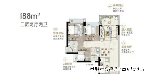 88㎡三房两厅两卫:刚需主力户型,总价199万至228万。