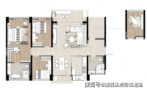 除此之外,项目建面约138㎡四房两厅两卫,主打改善定位,打造约31.5㎡阔绰主卧套房,配备独立卫浴与衣帽间,彰显主人尊贵身份;预留灵活可变X空间,可根据家庭需求改造为书房、茶室、健身房或儿童游乐区,适配多人口家庭的成长需求;南北双阳台设计,4开间朝南,南向阳台连接客厅用于观景休闲,北向阳台服务次卧或厨房,通风采光效果极佳。全系产品均采用品牌精装交付,涵盖墙面、地面、厨卫设施等,省心省力,交房即可布置入住。