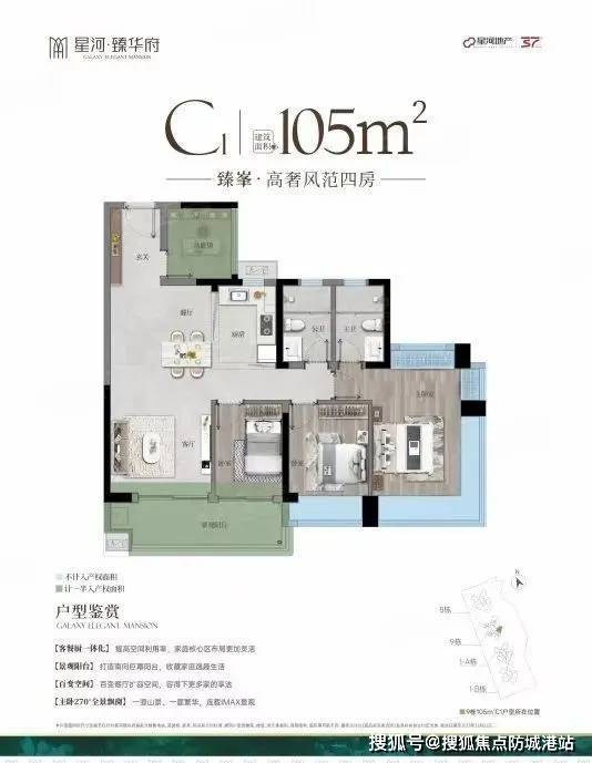 目前,星河臻华府推出了建面约为85-125平方米的三到四房户型。所有户型均采用了新规产品设计,使用率接近100%,主卧配备270°飘窗,极大地提升了居住舒适度和空间利用率。