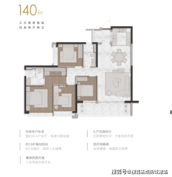 建面约140㎡三居户型,布局方正通透,南向采光面充足,客厅连接宽景阳台,可远眺园林盛景;主卧配备独立卫浴与衣帽间,保障居住私密性与舒适度,适合三口之家居住。建面约180㎡四居户型,采用横厅设计,空间开阔大气,南北通透,通风采光俱佳,多卧室朝南,搭配全景落地窗,最大化呈现白云山景观与园林风光。