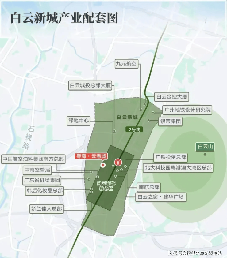 粤海云港城坐落于白云新城CBD中轴之上,地处云城西路与云城南四路交汇处,占位白云新城核心发展板块,毗邻广州白云机场跑道空间旧址,兼具历史底蕴与时代价值。作为官方重点打造的总部经济集聚区,白云新城仅9.2平方公里的土地上,云集了南航、无限极、华为、韩后等行业巨头,产业底蕴深厚,规划高度领先。