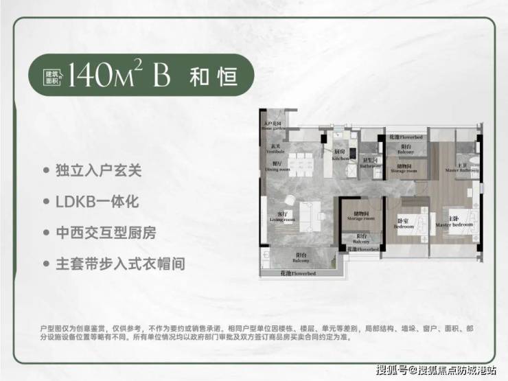 140㎡南北对流双阳台户型:通风采光优秀,能够最大程度地享受园景。