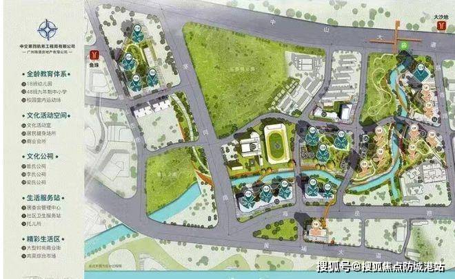 教育配套:项目自带一所 18 班幼儿园和一所 45 班九年一贯制学校(30 班小学 + 15 班初中),周边 1 公里内有广州石化小学、港湾小学等省一级学校,教育资源丰富。