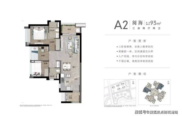 约93㎡南向3房,约93㎡北向3房。