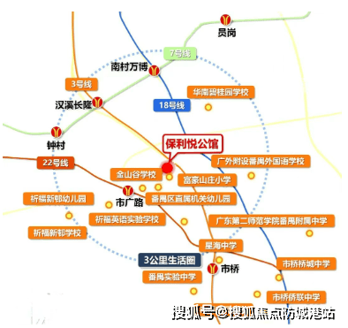 保利悦公馆位于广州市番禺区东环街道兴学路,处于市广路板块核心地带。该区域居住氛围浓厚,周围有招商金山谷、富豪山庄和中铁建花语岭南等高端住宅区,形成了一个成熟的生活圈。此外,项目紧邻里仁洞村旧改区,未来将受益于其规划的14所学校、一所综合医院及9块商业地块等配套设施,进一步提升区域价值。