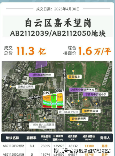 嘉悦云启由越秀地产于2025年通过公开竞拍以4.81亿元摘得嘉禾望岗AB2112039与050两宗地块,楼面地价分别为1.34万/㎡与1.87万/㎡(未扣除配建)。项目总占地面积约9.6万平方米,总建筑面积约16.8万平方米,容积率约3.15,绿化率达35%,规划4栋27–37层高层住宅,总户数约580户,车位配比高达1:2,充分保障居住舒适度与私密性。项目采用“大盖板”设计,住宅整体抬升约15–16米,不仅有效规避地面噪音与粉尘干扰,更营造出“云端浮岛”般的居住体验,同时为地面释放出完整的公共空间与慢行系统。