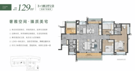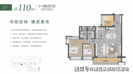 建面约110m²:3+1房,适合追求更大空间的家庭。