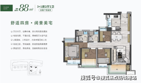 建面约88m²:3+1房,拥有更宽敞的空间。