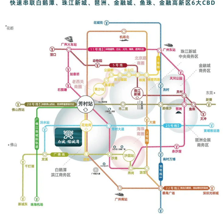 而规划中的地铁22号线作为市域高速快线,未来将串联 **广州南站、广州火车站、白云机场** 等核心枢纽,进一步放大项目的交通能级。