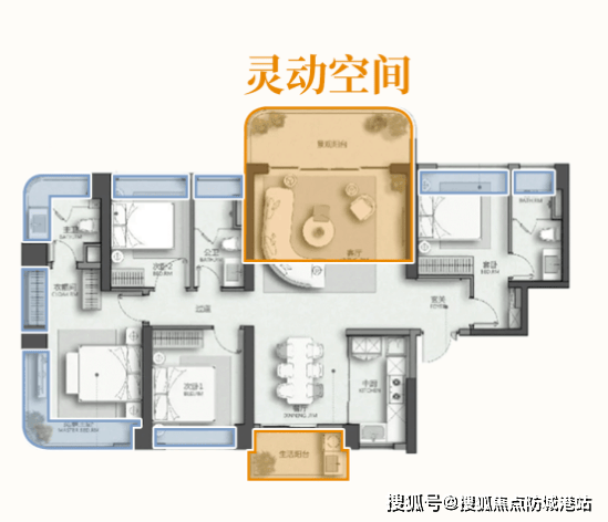 高赠送率的阳台设计:项目中的30%阳台超新规产品,使居住者能够用同等价格购买到更大的居住空间,实际单价更低,居住体验更佳。
