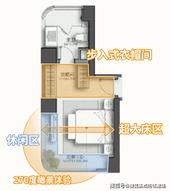 超级主卧:孵化期家庭的理想选择,卧室小家化设计,满足多样化的生活需求。