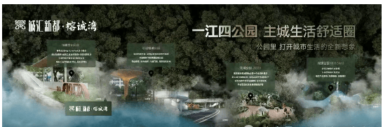 项目拥有优越的自然景观资源,四周环绕着四大公园:花地河绿道公园、榕诚公园、铁路文化公园(规划中)和花境公园(规划中)。此外,社区内还打造了一个滨江会所——「榕诚荟」,提供多种主题场景,让业主享受高品质的生活体验。社区绿地率高,六大森林主题园林与外部自然景观相融合,营造出一种低密度、宜居的生活环境。