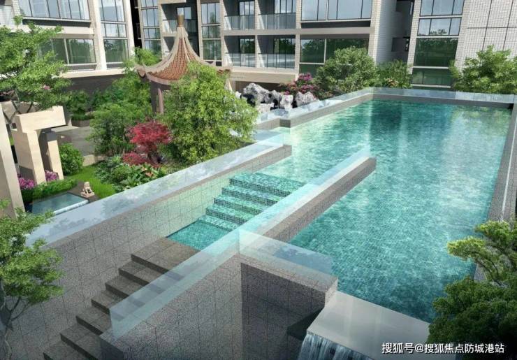 中心泳池与休闲景观相融,畅泳之际尽享美景。