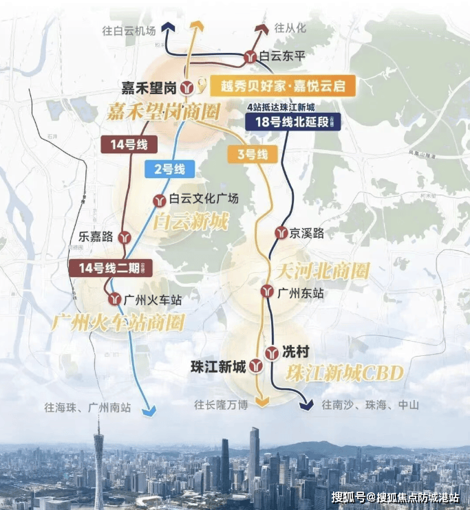 从项目出发,0 换乘直达广州四大超级交通枢纽:3 号线直达白云国际机场、广州东站;2 号线直达广州火车站、广州南站,实现航空、高铁、普铁、地铁无缝衔接。对于经常出差、旅游、返乡的业主,这种交通优势不可复制。同时,地铁 30 分钟覆盖珠江新城、体育西、白云新城、广州设计之都等核心就业区,满足在天河、越秀、白云上班人群的日常通勤需求。
