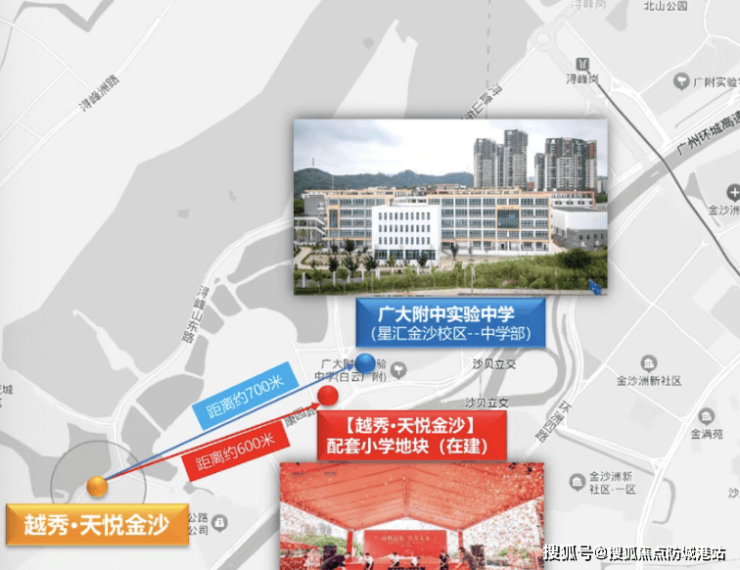 配建 18 班幼儿园 + 30 班小学,白云广附金悦实验小学 2025 年 9 月已开学;