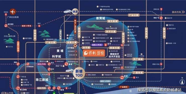 地铁城轨就在家门口:项目距离地铁23号线(规划中)永宁站约400米,一站黄埔,三站科学城;距离新白广城际约800米(建设中),一站新塘TOD,东部交通枢纽,汇聚九轨立体交通路网,约30分钟畅达广州各区,约1 小时畅享湾区生活。