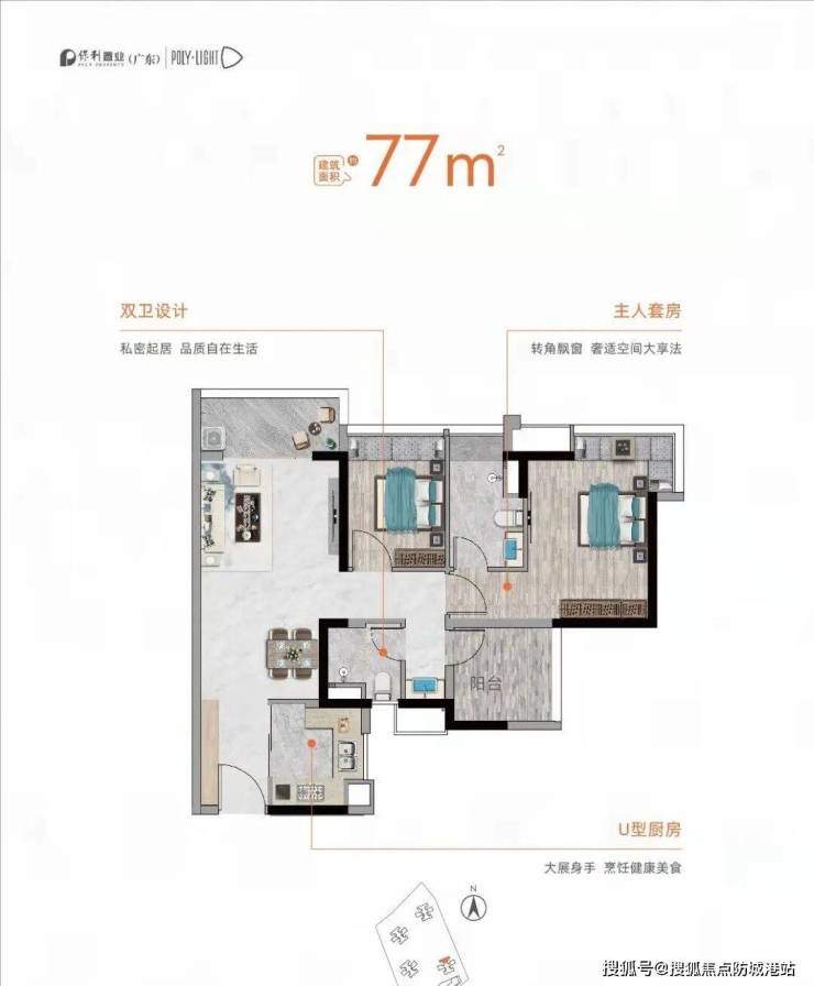 💯全能户型,置业首选:建面约77-105 ㎡Pro品质房,同等面积更大空间尺度,更多使用功能。