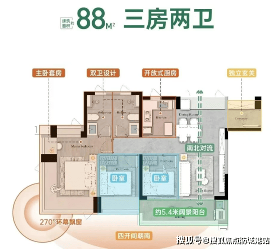 88㎡三房两卫:总价180万起,南向采光,LDKG一体化格局。