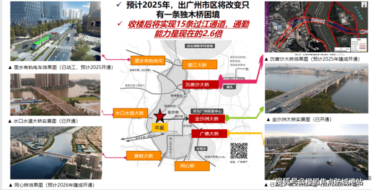 广佛同心桥(金沙洲连接荔湾滘口) :南北连通,从金沙洲南部出岛,接往老荔湾滘口、芳村、海珠西;
