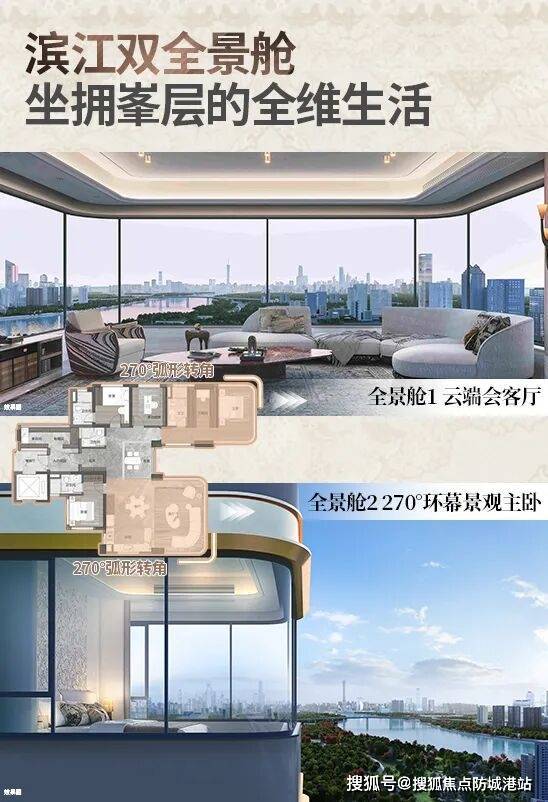 项目采用了国际顶豪设计理念中的“双全景舱”设计,通过大面宽玻璃与270°无界视野,为主卧和客厅带来飞机驾驶舱般的环幕沉浸体验。同样的曲面玻璃工艺,在深圳湾深湾玖序需要3000万以上的预算才能实现,而在中建・岭南序,仅需不到500万即可享受同款顶豪级居住体验。