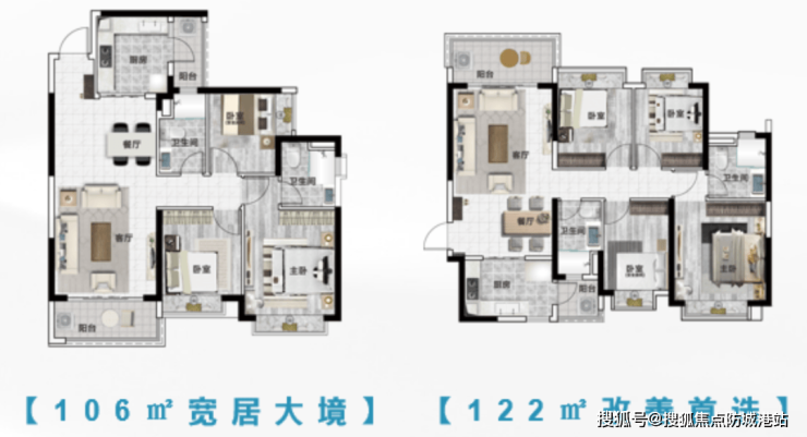 106-122㎡的三至四房户型,则聚焦改善型需求。户型方正通透,南北对流,采光通风极佳。主卧套房设计,配备独立卫浴与衣帽间,保障居住私密性;次卧空间宽敞,可根据需求改造成儿童房、书房或老人房,灵活适应家庭结构变化。餐客厅一体化设计,连接阔景阳台,营造出开阔的公共活动空间,无论是家庭聚会还是朋友宴请,均能从容应对。这类户型以合理的空间尺度与功能配置,为多口之家提供舒适的居住环境,满足改善型购房者对品质生活的追求。