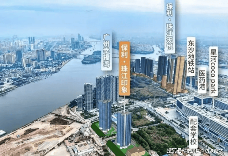 目前,东沙片区已聚集了保利、星河等多家品牌开发商,形成了高端住宅集群。其中,保利珠江印象凭借刚需友好型产品和全维配套优势,成为片区内的热销楼盘。项目紧邻珠江后航道,享有 8 万平方米内港湾江景资源,加上双地铁、省一级名校等核心配套,成为购房者抢占白鹅潭发展红利的优选。