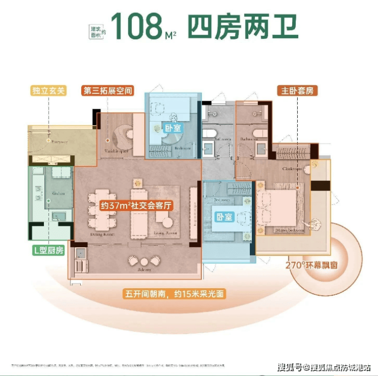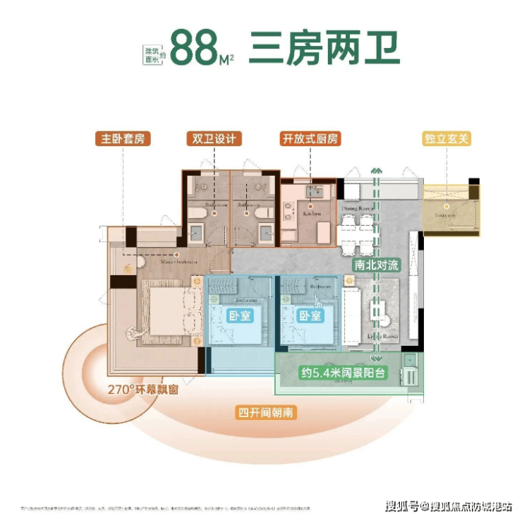 项目推出的户型面积从88平方米至108平方米不等,均为三房或四房设计,使用率接近100%,最大限度地提高了空间利用率。其中,88平方米户型为三房两卫设计,适合刚需购房者;而108平方米户型则为四房两卫设计,适合追求更高生活品质的家庭。所有户型均采用新规设计,相比板块内现有产品更具竞争力。