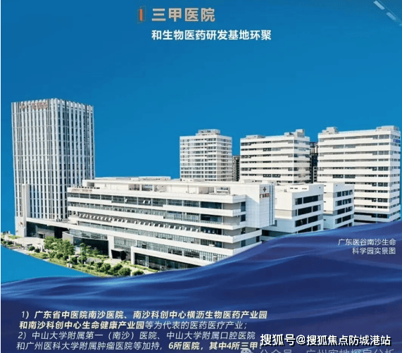 医疗:3公里范围内汇聚中山大学附属第一(南沙)医院、广东省中医院南沙医院等3家三甲医院,1.5公里内还有南沙区第一人民医院,医疗资源密集且优质。