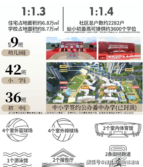 越秀大学星汇锦城的一大亮点是其卓越的教育资源。项目内设有一所9班规模的幼儿园、42班小学以及36班初中,总计提供3600个学位,超过了业主户数(2577户)。尤为值得一提的是,该教育体系由知名公办学校番禺中学负责办学,师资力量雄厚,招生对象主要面向小区内的业主子女,为居民提供了优质且稳定的教育资源。