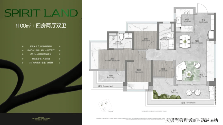 建面约120㎡ 四房两厅两卫:该户型是海珠1000万内罕见的南北通透大四房,双玄关入户设计提升归家仪式感与收纳能力。LDKG+X一体化空间打造约28㎡南北对流大方厅,空气流通顺畅,搭配豪宅同款中西分厨,满足高端居住需求。约7m大平层级阳台与约23㎡奢阔主卧相得益彰,主卧配备私享独立衣帽间,兼顾实用性与品质感,适合追求居住舒适度的改善家庭。