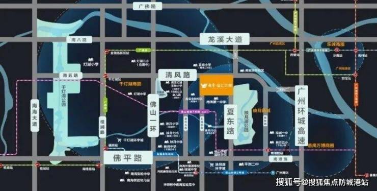 交通上,项目地处千灯湖 C 区金融产业带旁,紧邻清风路主干道,自驾可快速通达千灯湖金融高新区。虽然目前公共交通稍显薄弱,但周边规划有佛山 7 号线清风东路站、佛山 10 号线南平东路站,距离约 500 米,未来地铁开通后,通勤便捷度将大幅提升。此外,南海有轨电车 1 号线康怡公园站距离项目约 2 公里,可换乘广佛线直达广州,满足广佛通勤族的出行需求。
