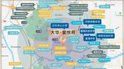 大华・紫悦府位于番禺市桥板块,周边全维资源密集,生活便捷度高。商业配套逐步完善,自带 1364㎡商业街铺,满足日常购物需求;步行可达海伦堡与奥特莱斯联合打造的 42 万㎡商业购物中心(建设中),未来大型商业需求无需远行。医疗资源丰富,周边有番禺区第三人民医院、中心医院、中医院等,健康保障便捷。