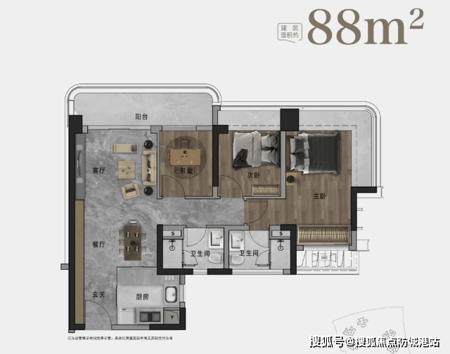 约88㎡ 三房两厅两卫:科学城核心区罕见的紧凑型三房,总价门槛低。采用“四开间朝南”或“三面宽朝南”设计,实现小面积下的极致采光与通风。入户独立玄关、U型厨房、双卫配置,功能齐全,是年轻家庭首套改善或精英人士独居的绝佳选择。