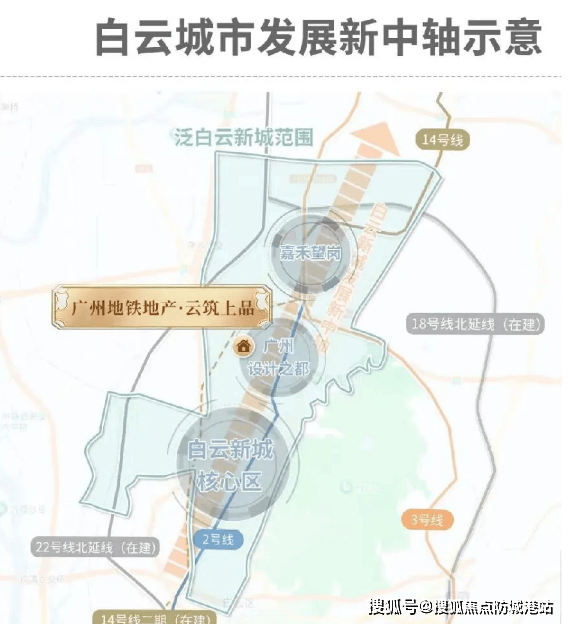广州地铁・云筑上品坐落于白云设计之都中区板块,该板块依托十四五战略规划,体量庞大,是白云新城的核心区域,与广州时尚之都共同构建国际交往中心、城市枢纽门户及总部经济聚集区。超 100 家国央及头部企业的进驻,使其成为广州通向国际创新之都的新起点。在交通方面,项目地理位置优越,约 200 米直达在建的 14 号线鹤南站,约 1 公里可抵达 2 号线黄边站。尽管目前 14 号线鹤南站未开通,前往 2 号线黄边站耗时较长,但待鹤南站开通后,通勤时间将大大缩短。届时,与鹤南站 A 出口联通直达社区地下二层车库楼栋大堂的设计,将为居民提供无惧天气变化的便捷归家体验。自驾方面,约 35 分钟即可到达天河、海珠等 CBD 核心区域。
