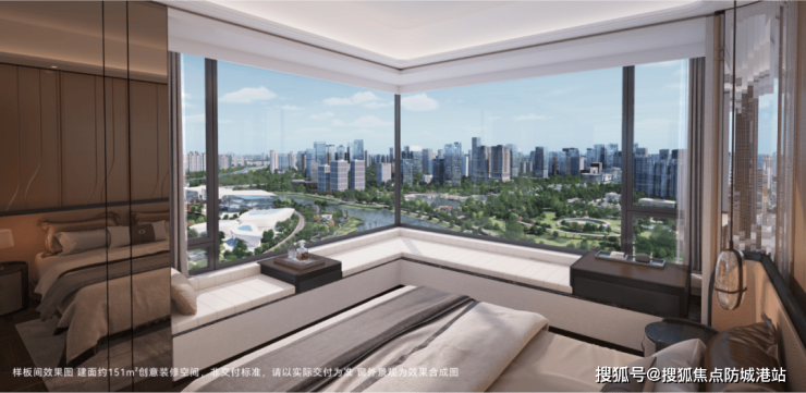 建发·灯湖天峯在设计上采用了现代简约风格,并融入了劳斯莱斯徽标的灵感元素,打造出独特的「金色飞檐塔冠」。其南向高达约80%的窗墙比(数据来源自图纸理论计算),消融了建筑与江河之间的边界,局部通透双层LOW-E玻璃立面,赋予建筑媲美纽约ONE57钻感天幕的视觉效果。