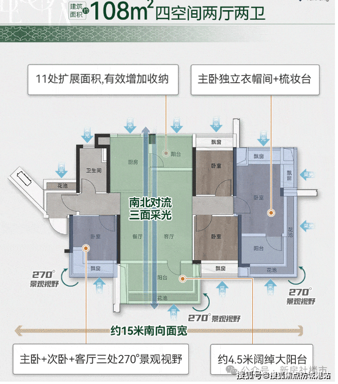 项目主推建面约 100 - 140㎡精装四房,采用新规设计,阳台占比达 20% - 25%,实用率高达 110% - 130%,实现空间利用最大化 。建面约 138㎡四房打造 “LDKB + X” 一体化超级方厅,约 70㎡客厅搭配南北双阳台,主卧 270 度环幕视野俯瞰中央公园;建面约 118㎡四房 A 户型 16.3 米南向面宽,四开间朝南,B 户型飞机布局,边户尽享 270 度景观;建面约 105㎡四房为东南单边户型,南北对流,主卧星空卫浴与拓展飘窗设计,兼具实用性与舒适度。每一款户型都以人性化设计,满足不同家庭结构的居住需求。
