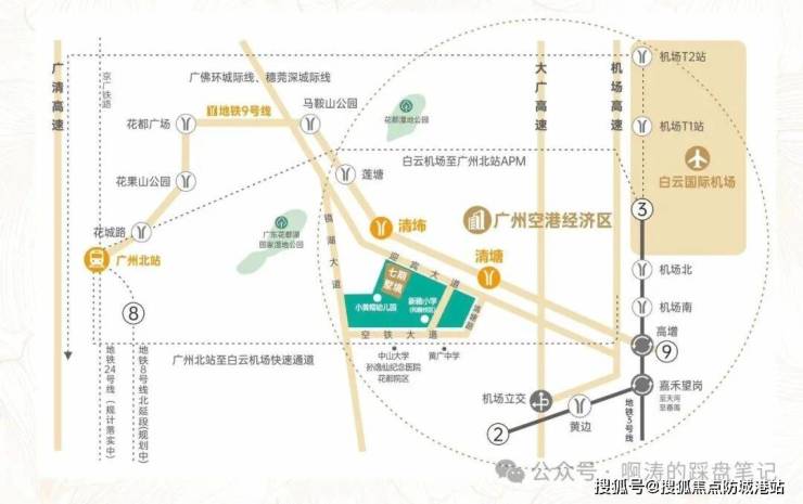项目拥有全域高效轨道交通路网,紧邻地铁 9 号线清㘵站、清塘站,组团距离双地铁站点直线距离仅约 200 米,步行短时间即可完成站点接驳。地铁 9 号线可快速换乘地铁 3 号线主干线路,1 站接驳城市南北大动脉,2 站直达白云国际机场,实现空港快速通达,9 站直达天河核心商圈,轻松串联广州主城商务、居住、消费核心板块。自驾出行层面,项目坐拥机场高速、花莞高速、乐广高速、大广高速四维高速路网环绕,快速衔接广佛肇、深莞惠湾区七城城市路网,跨区域出行高效便捷。城市主干道纵横交错,社区周边公交线路全覆盖,形成地铁、高速、主干道、公交四位一体立体交通体系,兼顾日常通勤、跨城出行、假日休闲多元出行需求,实现花都空港与广州主城全域高效联动。