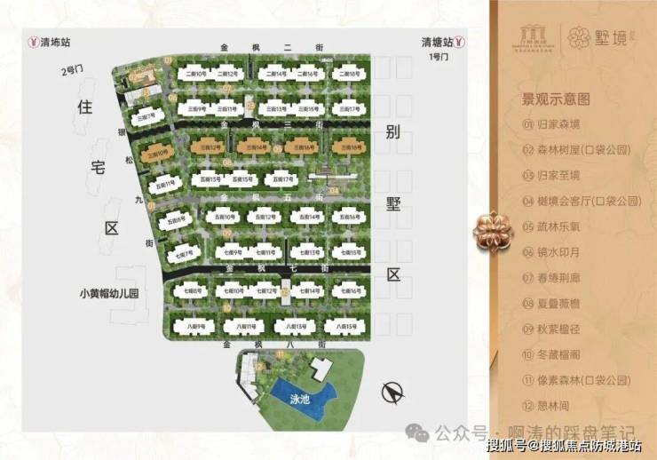 墅境组团园林由国内头部景观设计企业普邦园林全程打造,以 “隐于自然,墅定境界” 为设计核心理念,构筑当代隐奢森居园林体系。组团规划三大主题公园,分别为童趣绿洲、森境会客厅、禅意休憩平台,覆盖儿童玩乐、成人社交、老人休憩全龄段休闲场景。园区打造四季主题归家步道,划分春荆、夏薇、秋楹、冬榴四季景观动线,串联全域宅间邻里花园,园区甄选百种珍稀绿植,四季植被景观层次分明,形成流动式自然景观艺术馆。40% 高绿植覆盖率结合低密建筑排布,楼栋间最大楼间距约 46 米,无建筑视野遮挡,户户推窗直面中央园林盛景,内部园林与城市生态公园相互呼应,营造静谧舒适的森居生活氛围。