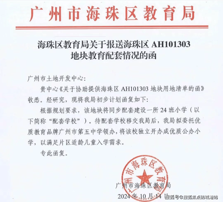 A:配建小学目前已启动施工,预计与住宅项目同步交付,2028年9月可正式开学(具体时间以教育局通知为准)。入读条件需遵循当年海珠区教育局公布的学区划分政策,优先保障项目业主子女入学,具体入学要求可在交房前咨询教育局或项目营销中心。