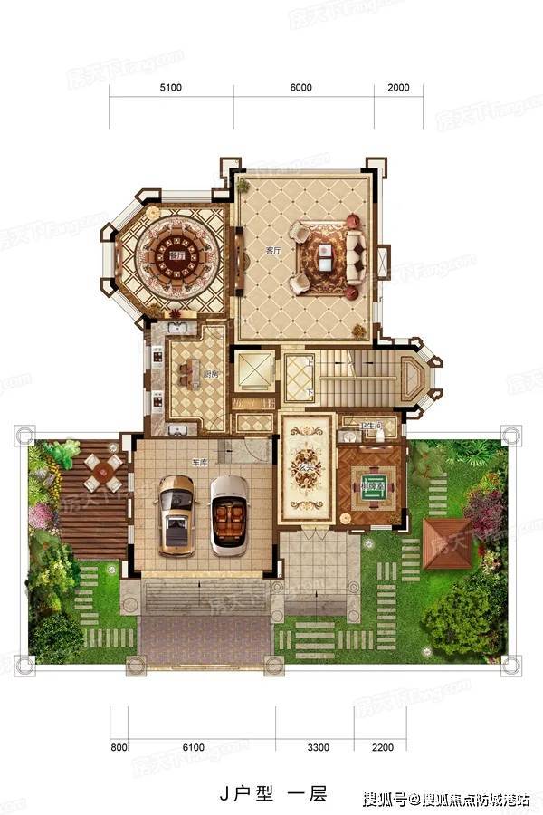 户型五:777㎡ 户型 花园面积:1000-1597㎡