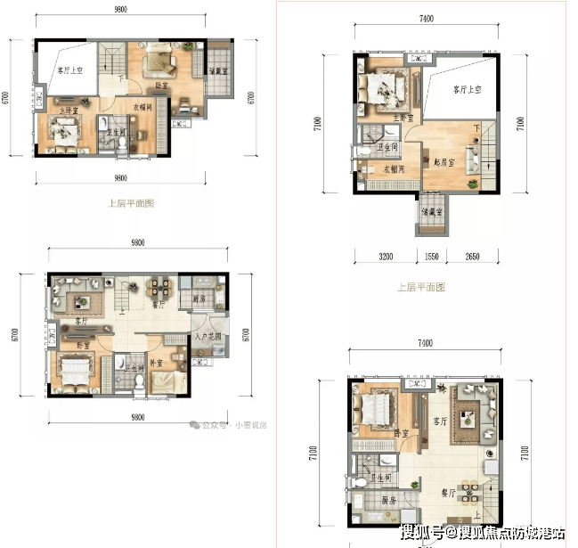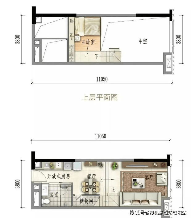 30-42㎡空间灵动多变:采用4.5米层高设计,部分户型创新双钥匙模式,上下双层独立入户,互不干扰。