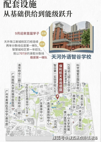 项目的教育资源十分丰富,中小学由广州市天河外国语智谷学校统筹解决,这是一所九年一贯制的优质学府,确保了孩子们能在一个良好的学术环境中成长。